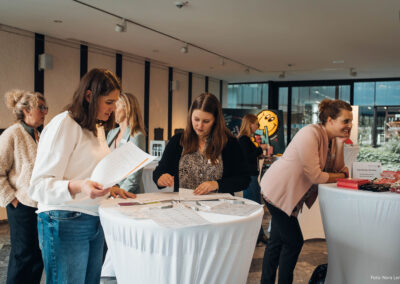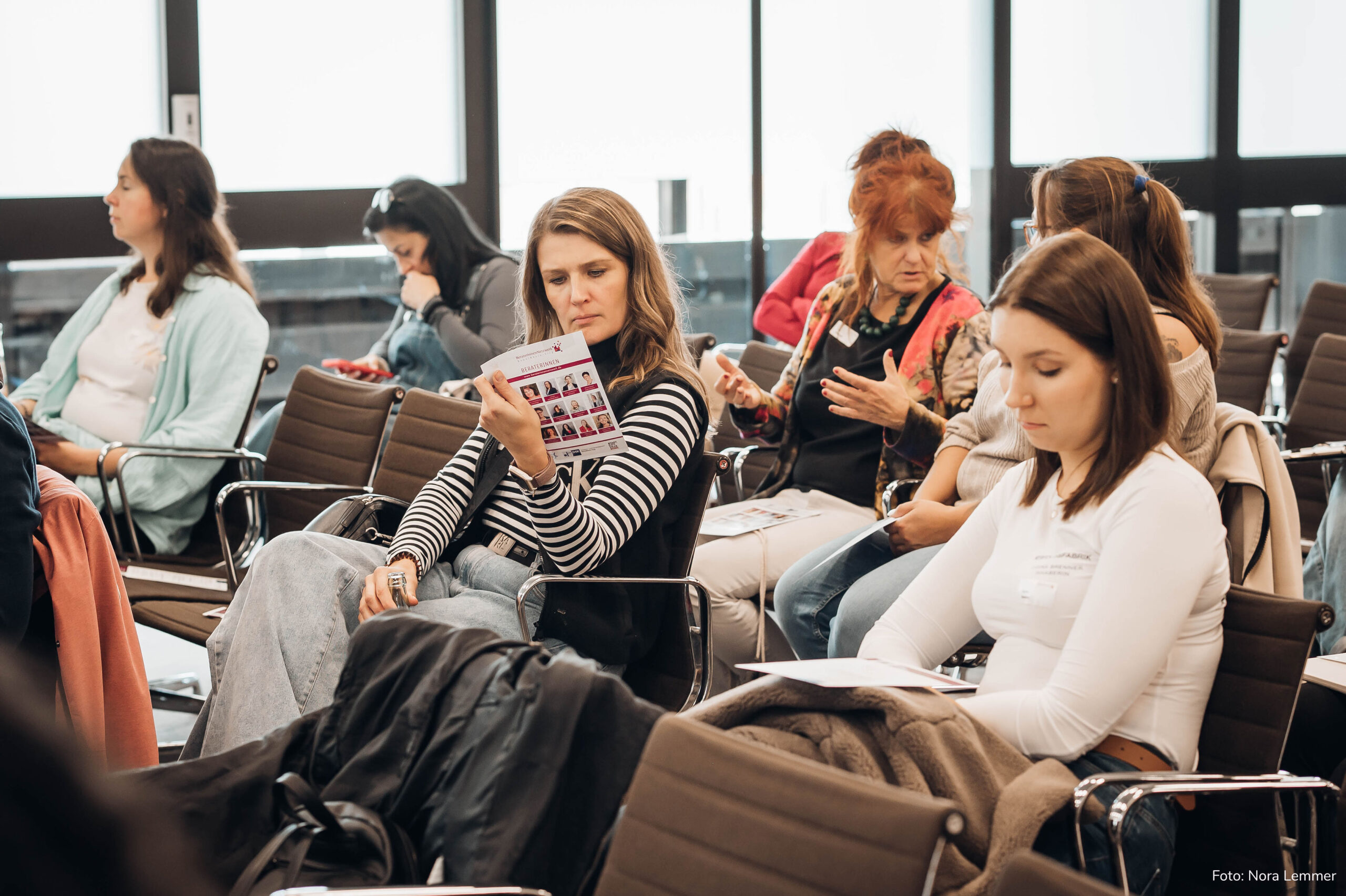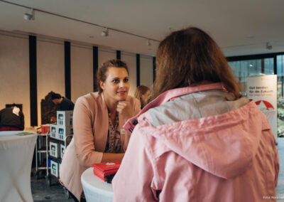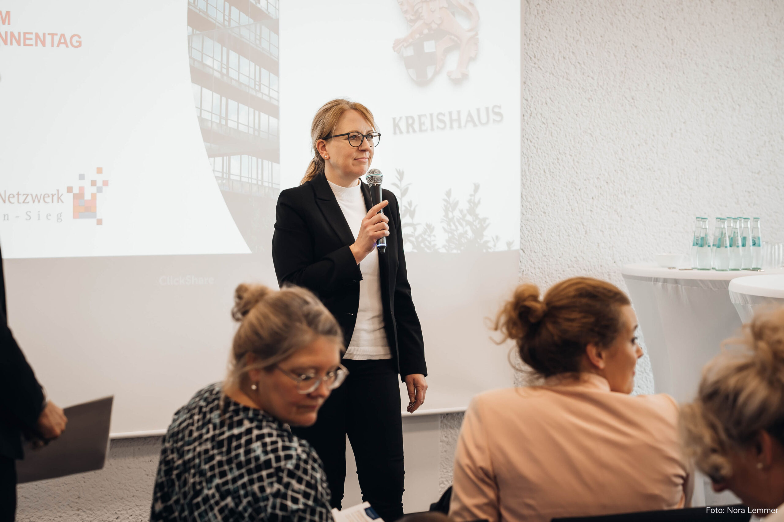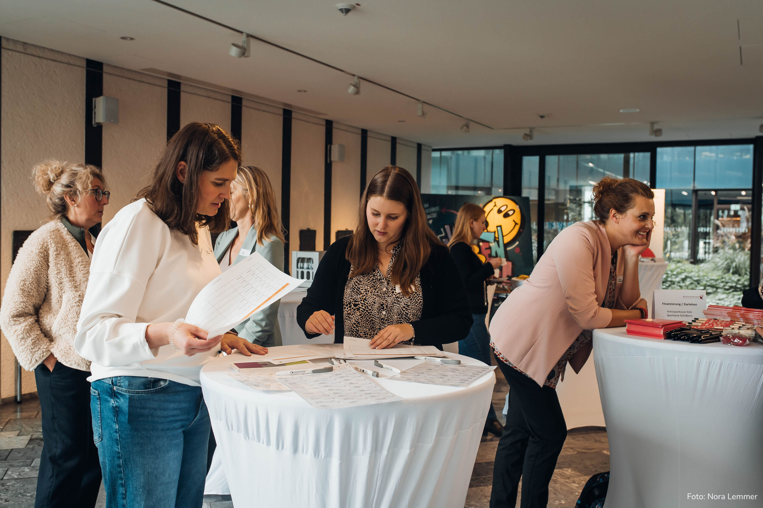 Nach dem „Startschuss“ durch Regina Rosenstock, Leiterin des Referats für Wirtschaftsförderung und strategische Kreisentwicklung, begrüßte Kreisdirektorin Svenja Udelhoven die Teilnehmerinnen mit einer sehr persönlichen Rede. Die Moderation des Nachmittags übernahm Martina Schmidt, Leiterin der Geschäftsstelle Siegburg der Agentur für Arbeit Bonn/Rhein-Sieg. Im Anschluss an die Begrüßung startete das Vortragsprogramm mit einem spannenden Beitrag von Dr. Petra Tiedemann (Tiedemann Wirtz & Partner), die das Thema Preiskalkulation in den Fokus rückte. Anhand eines praxisnahen Beispiels zeigte sie, wie Gründerinnen genau den Preis eruieren, der eine Lebensgrundlage bietet und auch die Altersvorsorge sowie krankheitsbedingte Ausfallzeiten berücksichtigt. Verena Pahmeier, Concré GmbH, Manufaktur für Konzeption & Kreation, erklärte, wie Gründerinnen mit ihrer persönlichen Geschichte authentisch und überzeugend auch im „world wide web“ auftreten. Denn nur mit einem Konzept und Struktur wird eine zielgruppenspezifische Ansprache überhaupt möglich sein. Für eine erste Vernetzung der Teilnehmerinnen sorgte anschließend die schnelle Founders Networking Round, moderiert von Birgit Goldenstern, Kompetenzzentrum Frau & Beruf Bonn/Rhein-Sieg. Michelle Urbahn, IHK Bonn/Rhein-Sieg, stellte in ihrem Vortrag dar, wie Fördermittel als Sprungbrett für die eigene Gründung genutzt werden können. Sie räumte mit Mythen auf und gab hilfreiche Tipps zur Antragstellung. Den Abschluss bildete die bewährte Talkrunde unter dem Titel „Gut gestartet – und nun?“, moderiert von Annett Herrendörfer, Sparkasse KölnBonn. Drei Unternehmerinnen – Isolde Schmitz (ChangeART), Natalie Wowk (Wowk Marketing) und Sonja Schuster (The Bold Zone GmbH) – berichteten offen über ihre ersten Schritte in die Selbstständigkeit, über Herausforderungen, Mutmacher und das, was man zwischen Businessplan und Realität nicht aus dem Blick verlieren sollte.